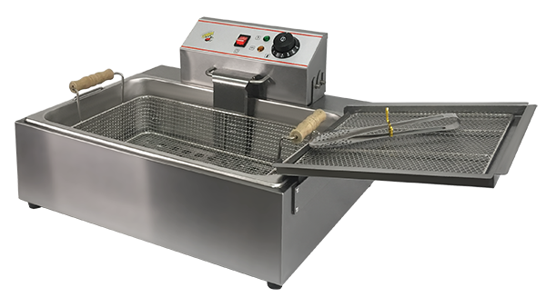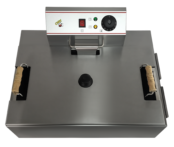 Чебуречницы CRAZY PAN являются универсальным оборудованием для приготовления чебуреков, беляшей и многих других изделий, требующих обжарки во фритюре. Чебуречница CRAZY PAN CP-BEF08 имеет 1 достаточно мощную группу нагрева, что позволяет быстро разогревать масло и, не теряя времени, приступать к работе. Данная чебуречница позволяет легко обжаривать изделия партиями, благодаря загрузке с помощью объемной корзины. Или, при необходимости, готовить поштучно, выкладывая готовую продукцию с помощью идущих в комплекте щипцов на поверхность бокового поддона. Масло с этого поддона свободно стекает обратно в емкость, делая изделия менее жирными, а расход фритюра более экономичным. Чтобы поменять масло, достоточно поменять саму гастроемкость, которая для удобства снабжена ручками. Ее провод питания не имеет штепселя (вилки) и предназначен для подключения с использованием переключателя-автомата, соответствующего электрической нагрузке.