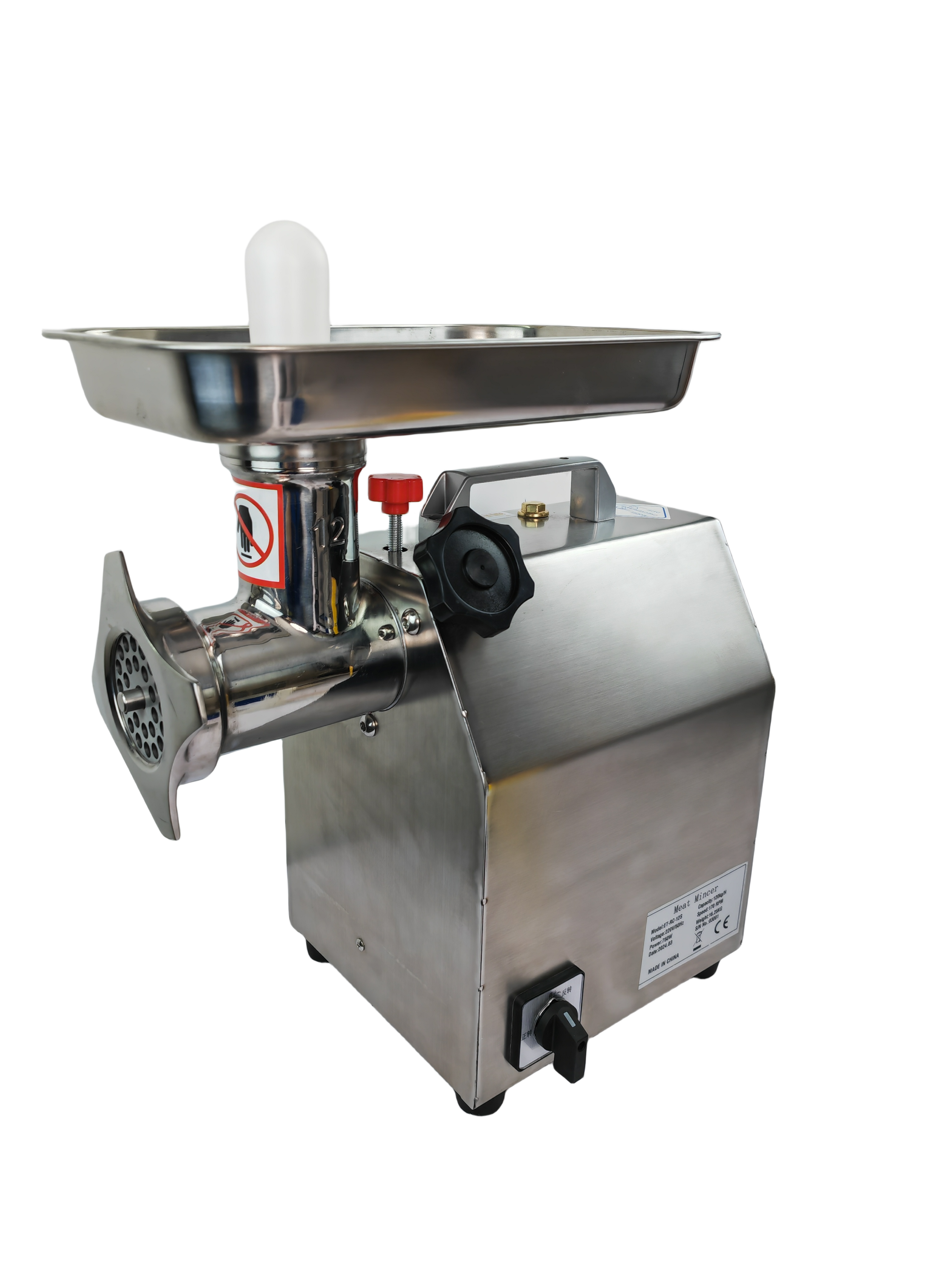 Производитель CRAZY PAN Артикул производителя CP-MG12S Мощность, кВт 0,75 Напряжение, В 220 Материал мясорубочной части нержавеющая сталь Материал лотка нержавеющая сталь Диаметр отверстий решетки, мм 6 и 8 Материал корпуса нержавеющая сталь Комплектация 2 ножа, 2 решетки, толкатель, купатница с внутренним диаметром 19мм Вилка в комплекте да Размеры, мм 450x260x360 Реверс да Масса, кг 20 Масса в упаковке, кг 20,5 Гарантия, мес. 12 Производительность, кг/ч 120 Страна КИТАЙ -